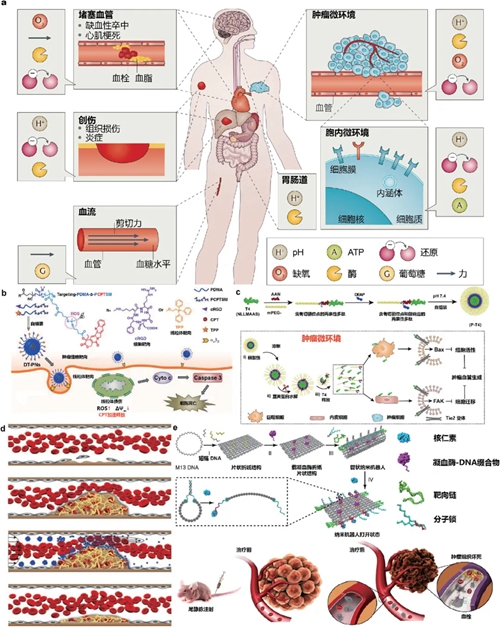 (a) 疾病微環(huán)境和生物體內(nèi)的刺激響應(yīng)要素[12];