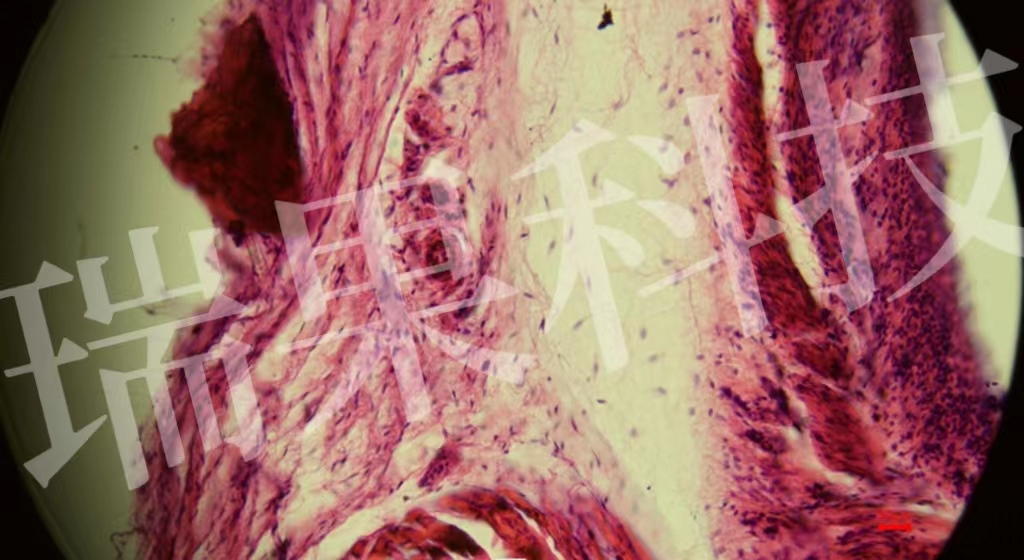 HE染色:蘇木精 - 伊紅染色法 ( hematoxylin-eosin staining ) ,簡稱HE染色法 ,石蠟切片技術(shù)里常用的染色法之一 。蘇木精染液為堿性 ,主要使細(xì)胞核內(nèi)的染色質(zhì)與胞質(zhì)內(nèi)的核酸著紫藍(lán)色 ;伊紅為酸性染料 ,主要使細(xì)